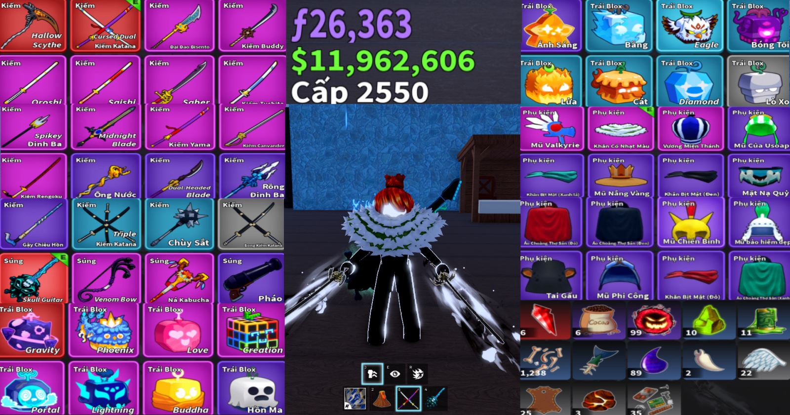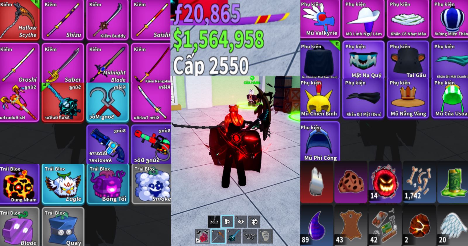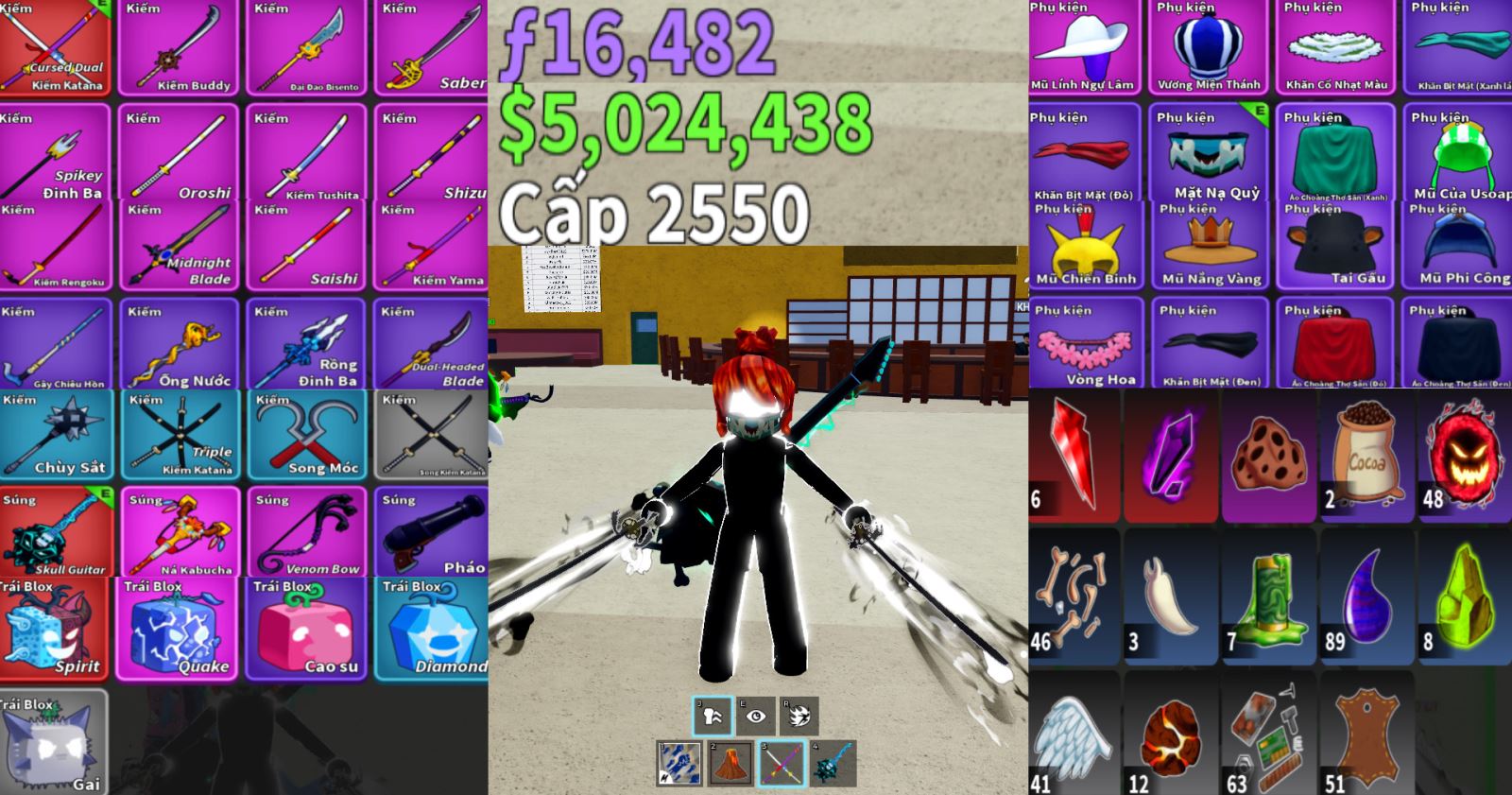 Ưu đãi == tặng trái ác quỷ khi các bạn xài hết trái trong acc ( chỉ cần nhắn tin qua hỗ trợ sẽ thêm trái vào cho các bạn )